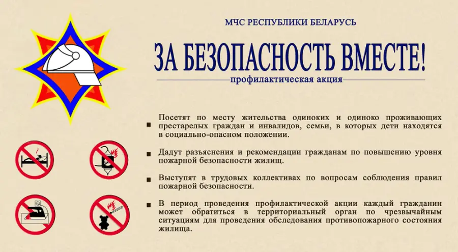 В целях повышения уровня безопасности населения Министерством по чрезвычайным ситуациям в период с 2 марта по 18 марта организовано проведение республиканской пожарно-профилактической акции по предупреждению пожаров и гибели людей от них в жилищном фонде в осенне-зимний период «За безопасность вместе».